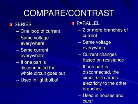 Compare And Contrast Series And Parallel Circuits.. V / r = v / r 1 + v / r 2 + v / r 3. Series circuits, you can understand what makes a parallel circuit unique.